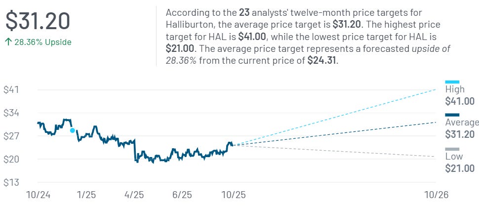 Hallliburton advantage is that it doesn’t rely directly on oil’s price. It relies on the need for oil. Even if prices decline, the need for wells might slow but doesn’t disappear and maintaining existing ones is still necessary. A raising demand for the commodity will raise demand for its service, but a stable one will also yield a stable environment.