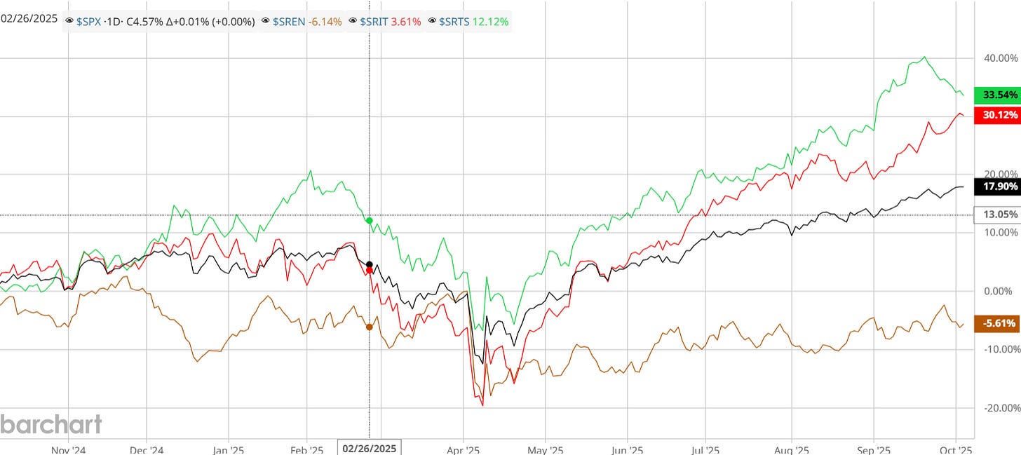 The market has ignored companies involved in fossil energy while pushing tech and tech services to new all-time highs each month.