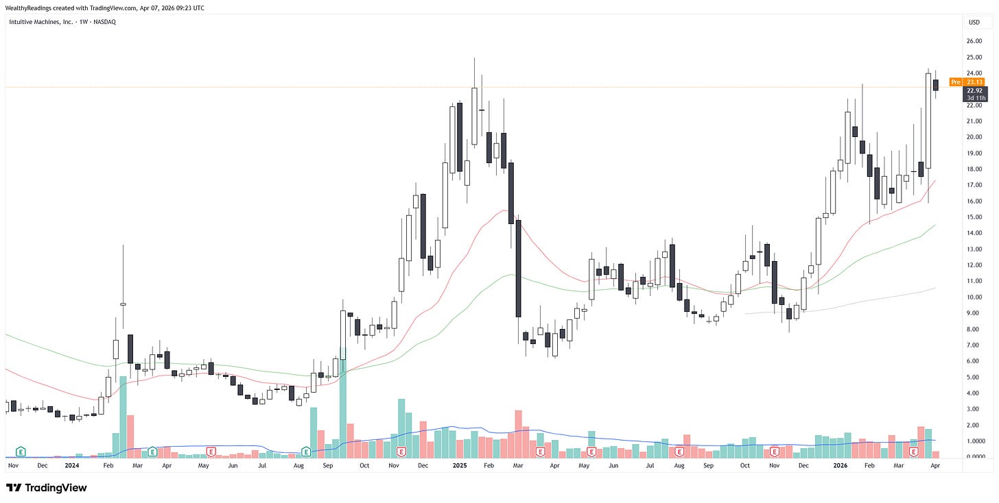 This is the bottom line of the trades, speculative but based on real fundamentals and potential, carried by a heavy momentum with SpaceX and the Artemis II mission, the push governments are giving to space exploration, etc…