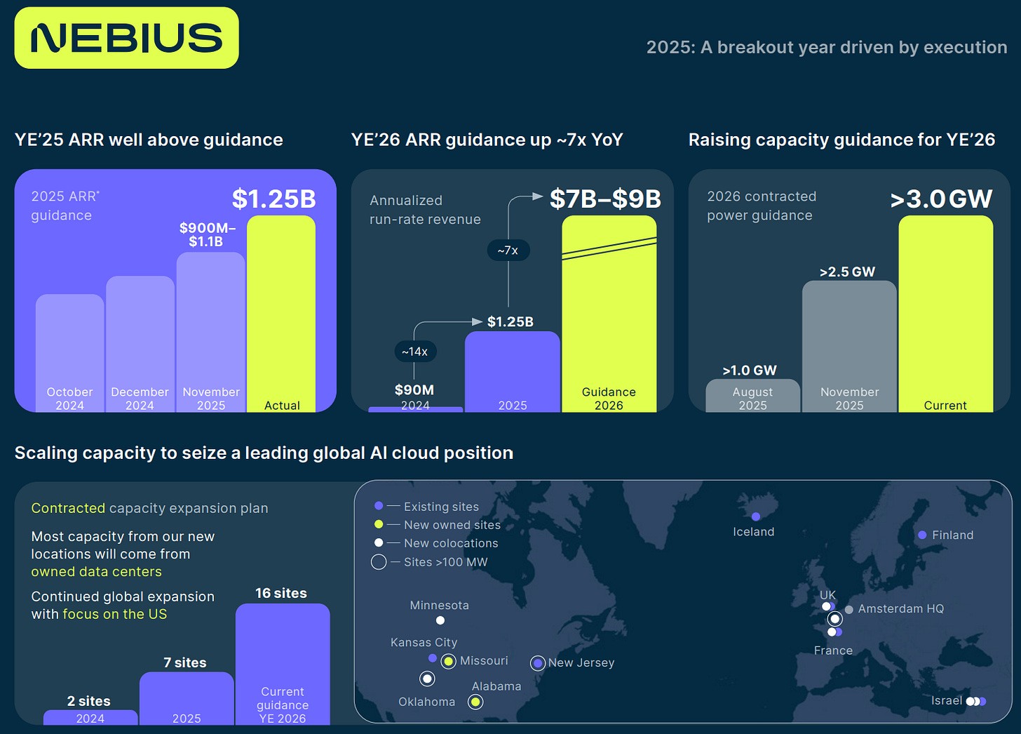 They exceeded their own FY25 ARR guidance, were sold out on capacity, reiterated their FY26 ARR guidance based on today’s very positive market dynamics, and increased both their FY26 contracted power guidance and the number of datacenters they intend to have running from 7 to 16.