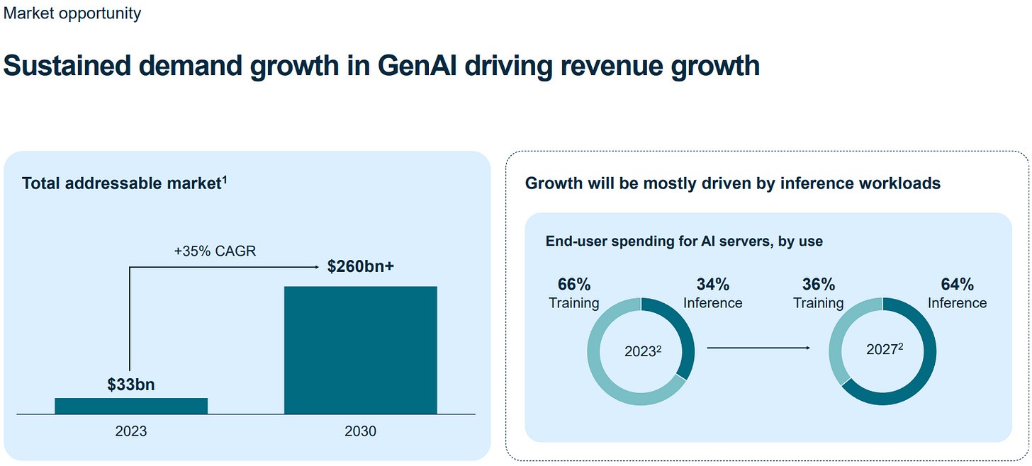 Inference is expected to grow much faster and become a larger market than training over the next few years, as models are deployed for real-world use cases serving hundreds of millions, probably billions, of users.