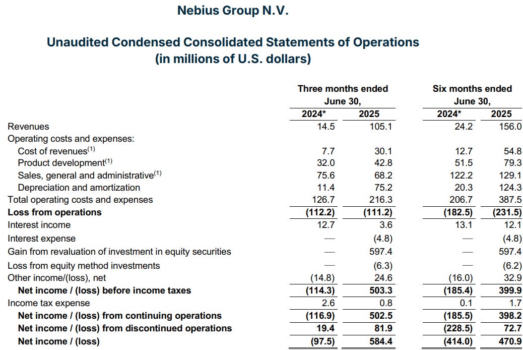 Nebius is a growth story, early in its journey after its separation from Yandex in 2024, so YoY comparisons are irrelevant as it compares different business models. So there isn’t much to say in terms of financials.