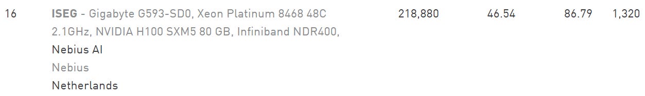 As Nebius expands geographically, they won’t be able to replicate these datacenter optimization everywhere, but their hardware optimizations will happen everywhere, allowing Nebius to offer a competitive service and pricing.