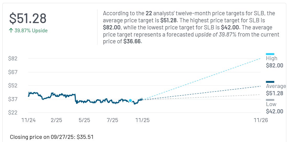 In brief, SLB is a strong company in a forgotten sector and analysts have a higher price targets, with a big upside.