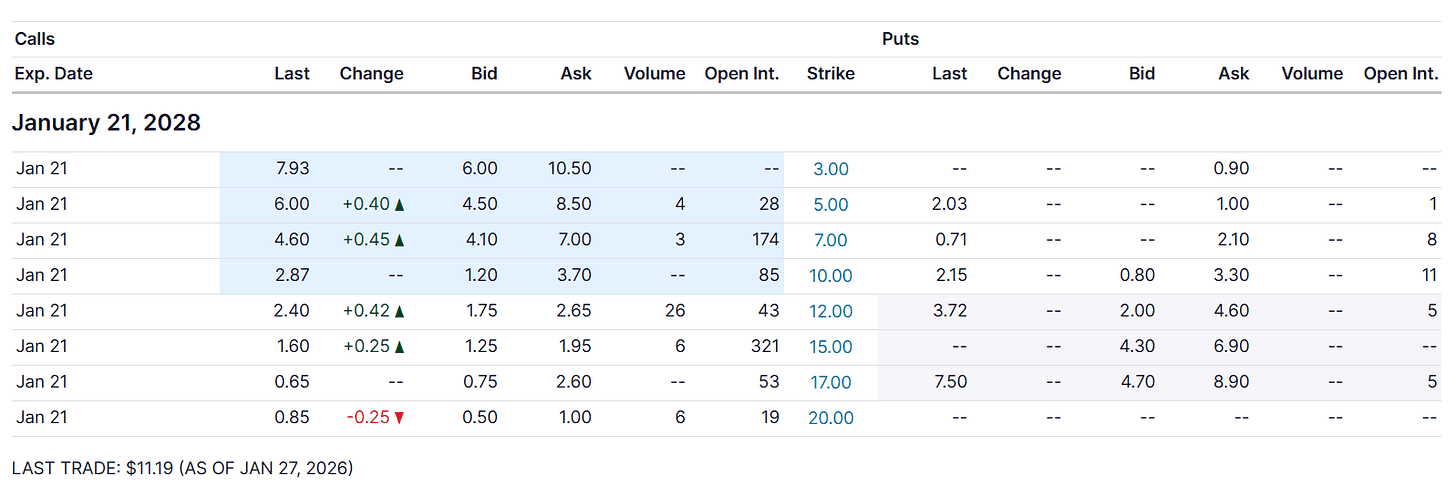 Pushing to January 2028, which wouldn’t be impacted by the November presidential elections yet, with a floor at $10 and a target at $15, you’d be paid $0.90 to take that trade for $1,000 of collateral - much less considering the two-year timeframe, which gives room for a margin positions. Prices would be even better if we were to retest that $10 region, but the trade already seems great today.