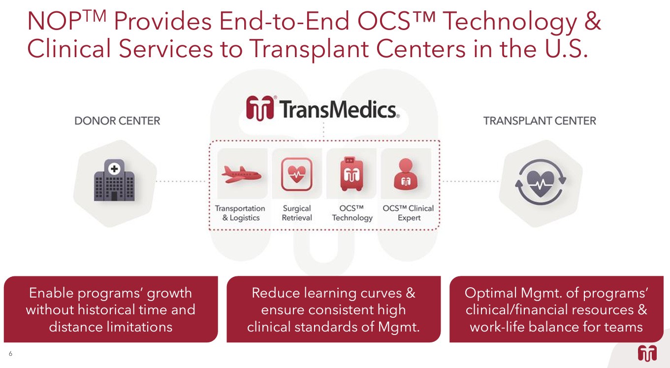 “We believe the OCS and the NOP drive significant benefits to all stakeholders in the field of organ transplantation. For patients, we believe the OCS and the NOP provide additional access to life-saving transplants and allow for quicker recovery following transplantation. For hospitals, we believe the OCS and NOP provide a means to increase transplant volume, treat more patients, enhance provider status and improve transplant program economics. Finally, we believe the OCS and NOP provide payors with a more cost-effective treatment for end-stage organ failure and reduces exposure to significant post-transplant complication costs and extended hospital stays.”