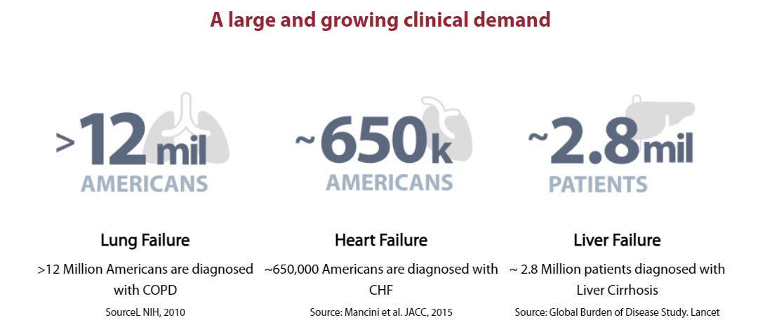 Geography. The need for transplants is growing rapidly due to our new lifestyle & chronic diseases as we've seen earlier. There's no reason this trend should slow down in the west and there are many reasons that demand grows in other regions as life quality & lifespan also rises.
