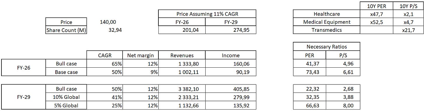 I do not believe for a second that such a company would not grow between 2026 & 2029, but I also have a hard time imagining a more bearish scenario than my own by 2026. So, my personal thesis will be between the 10% global market share & what I called the bull case which counts on a rapid international expansion - for the best product of a growing & needed sector designed to save & improve lives.