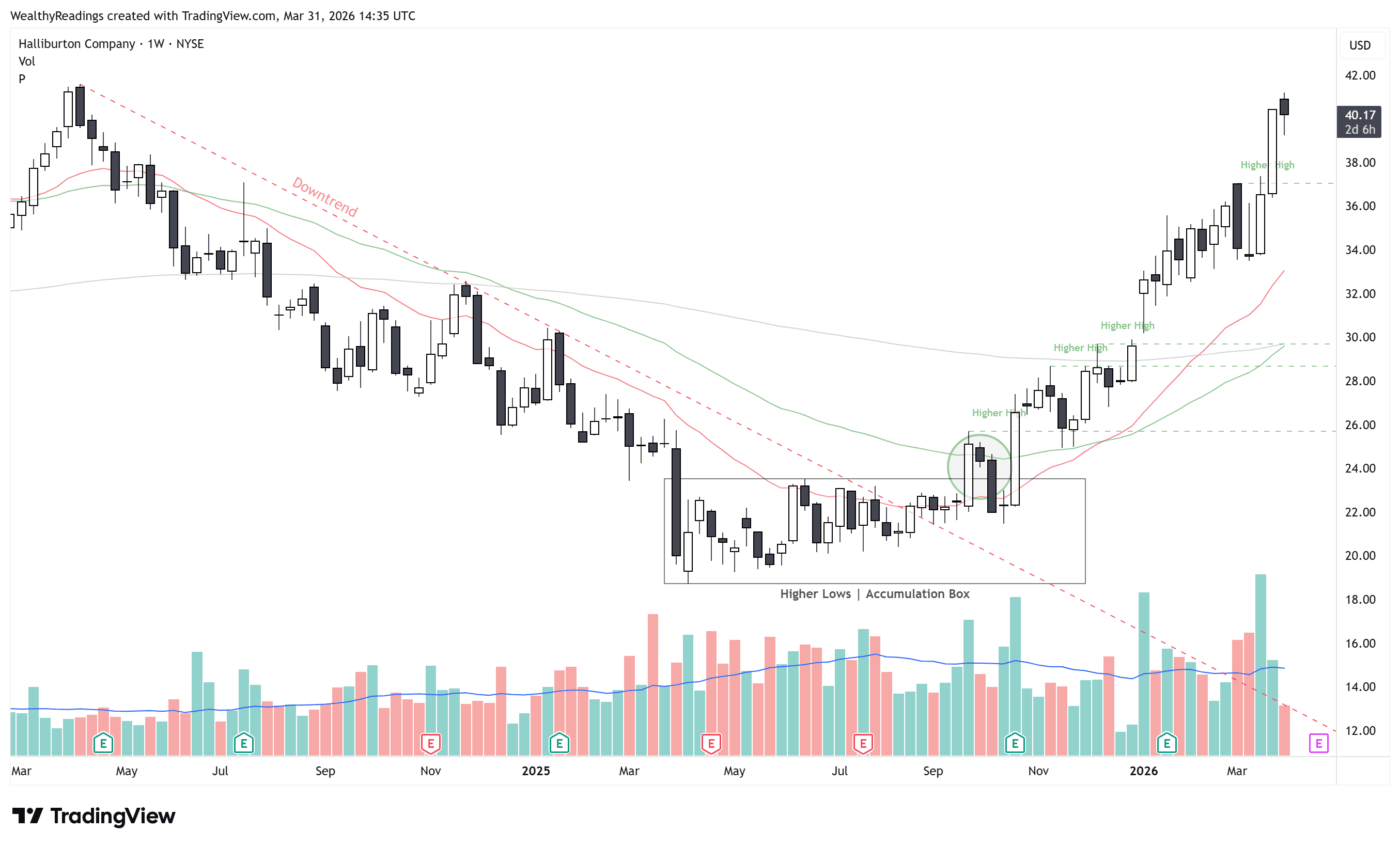 Perfect uptrend after years of downtrend and a perfect breakout. Price starts to be extended now, simply holding seems the best course of action, with a potential trim.