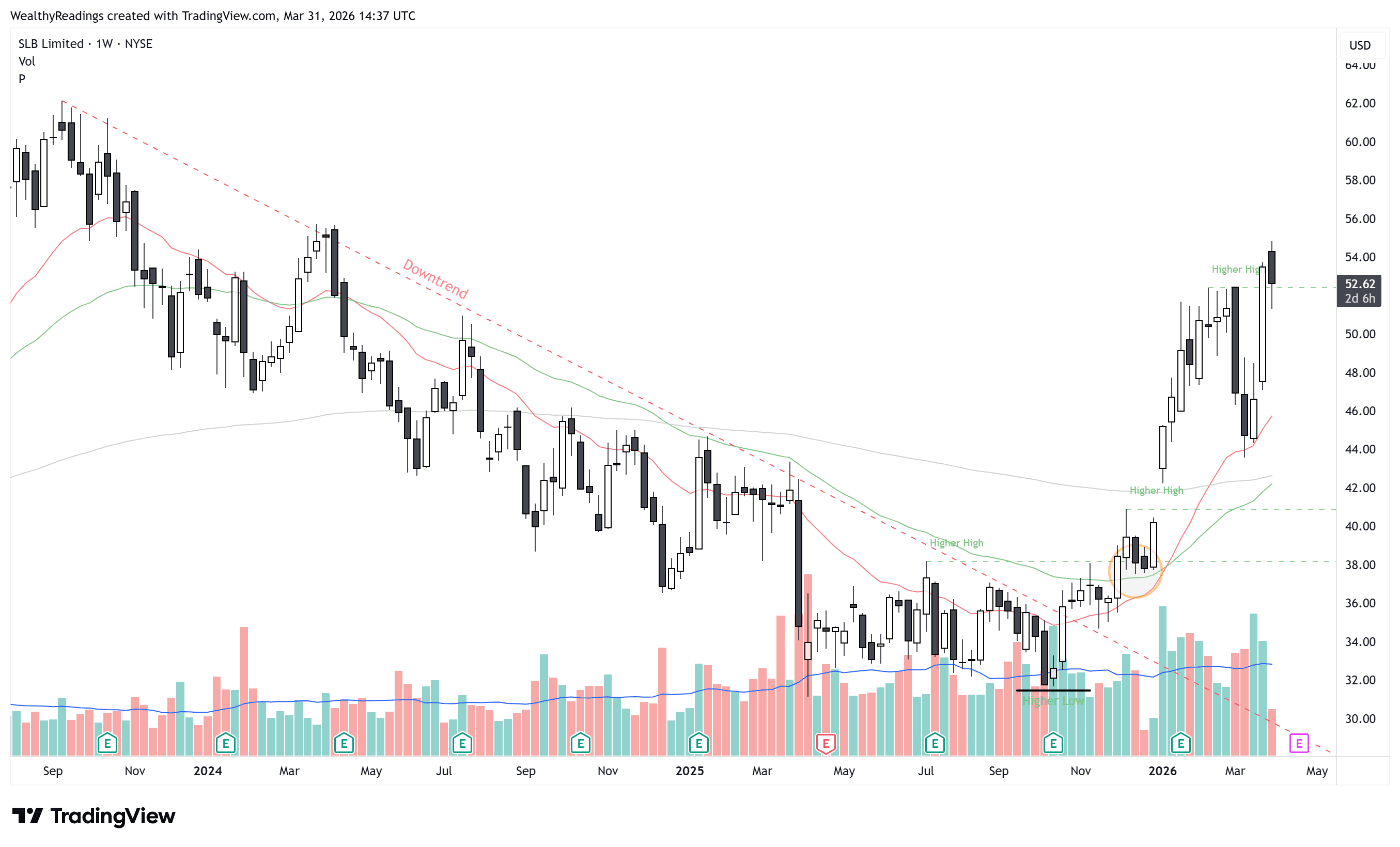 Perfect uptrend after years of downtrend and a perfect breakout. Price starts to be extended now, simply holding seems the best course of action, with a potential trim.