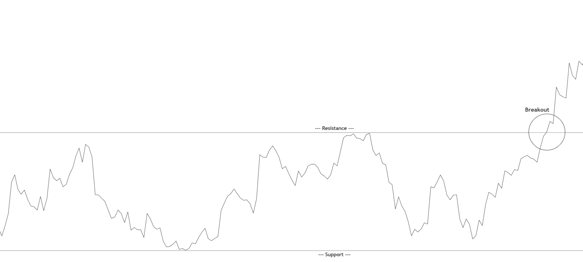 A bullish breakout happens when buyers overwhelm sellers.